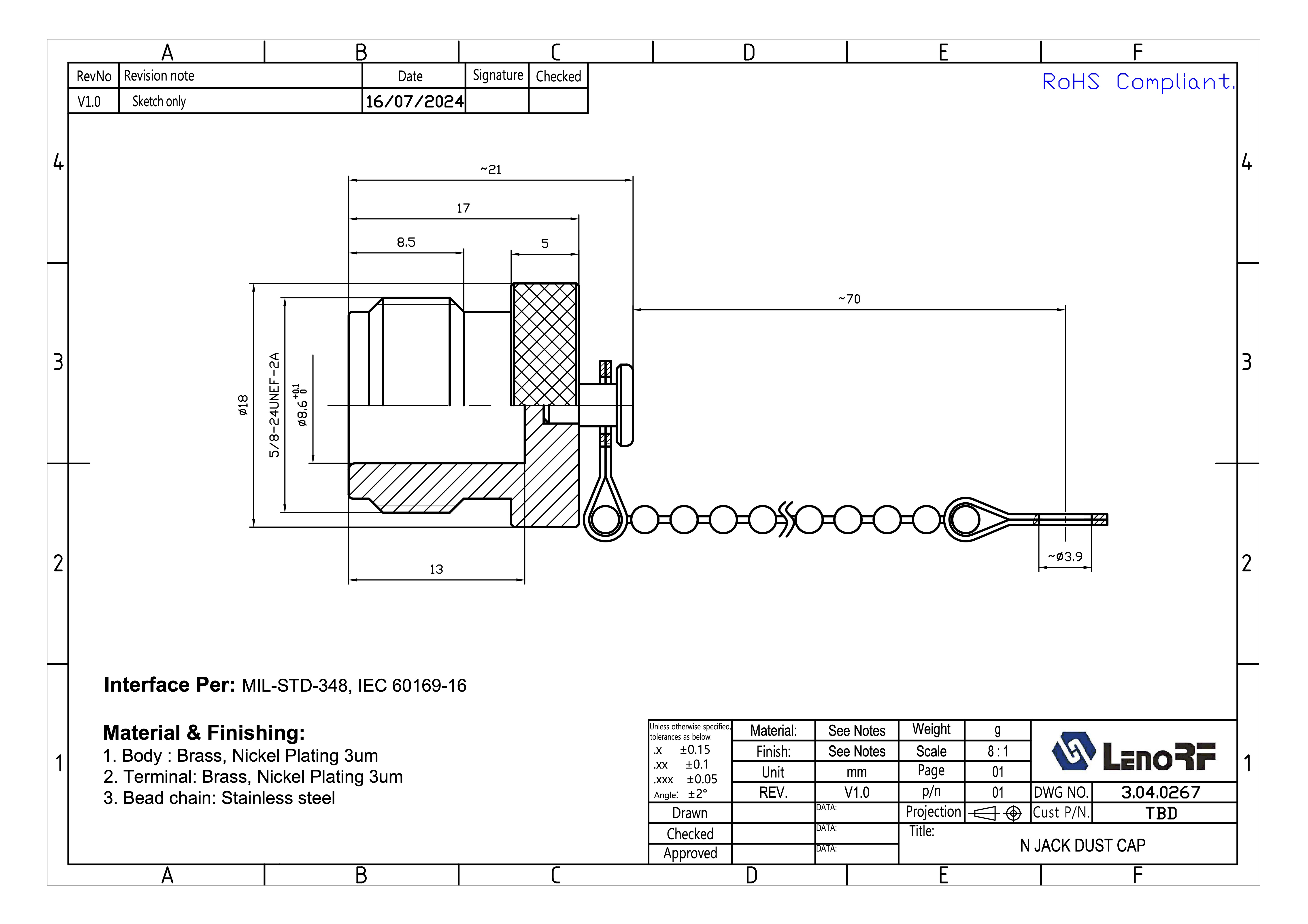 Захисний ковпачок для розʼємів N-male та UHF-male на ланцюжку 3.04.0267