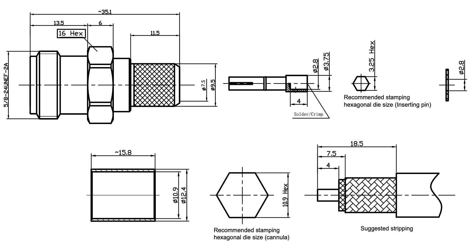 - Тип кабелю: спеціально розроблений для використання з коаксіальним кабелем RG8, KSR400, KSR400UF, LMR400, LMR400UF, SLL-400, SLL-400-SF, SLL-400-SFP.