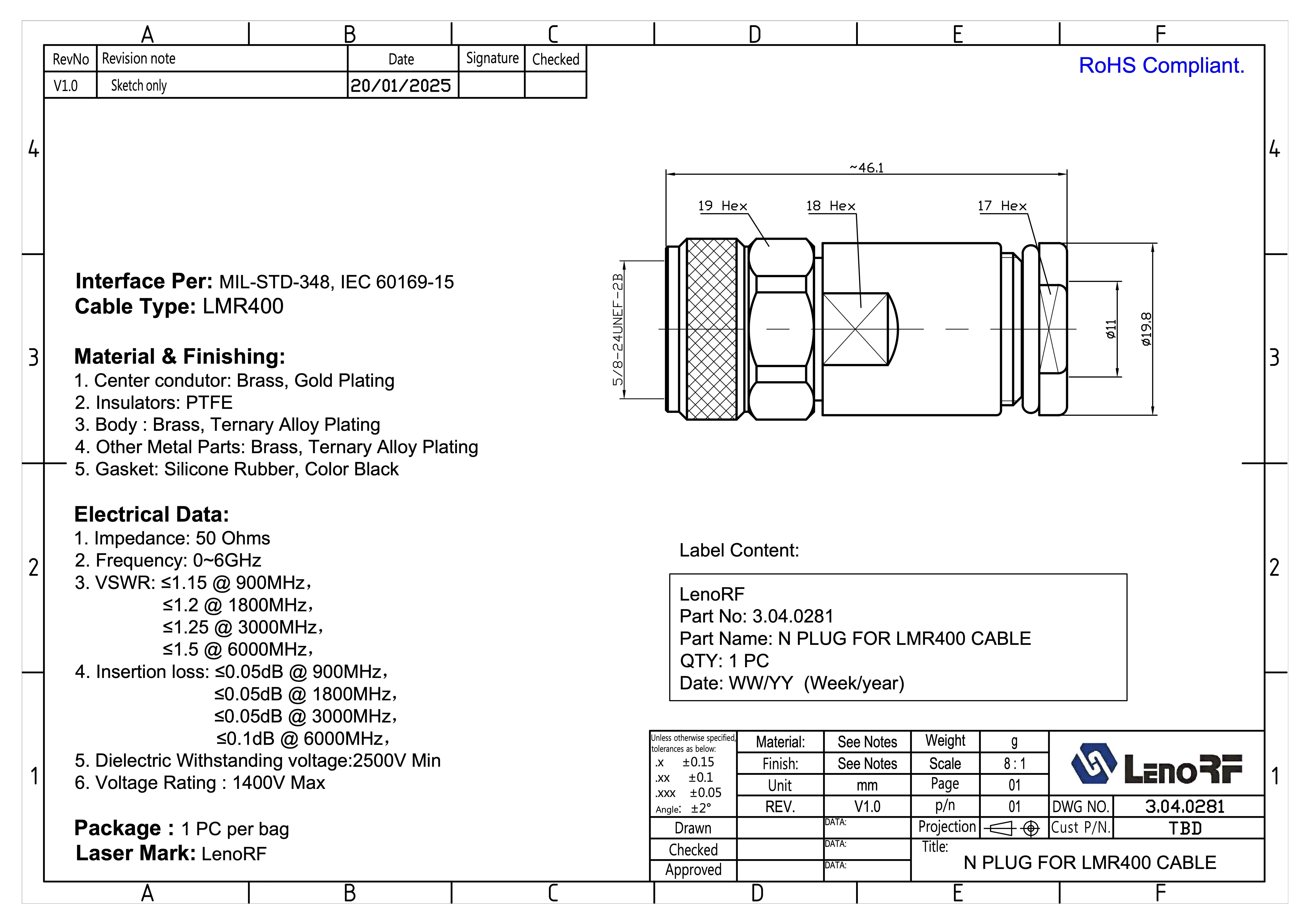 - Відповідність: MIL-STD-348, IEC 60169-15