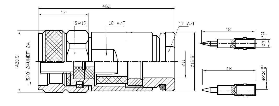 Роз'єм ВЧ N-male (KSR400UF, KSR400, LMR400, SLL400, RG8) 3.04.0281